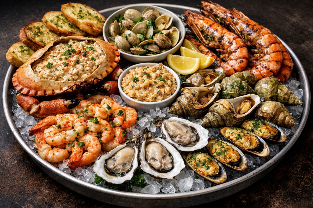 Nous sommes Ă©galement reconnus pour nos plateaux de fruits de mer gĂ©nĂ©reux ainsi que pour lâune de nos spĂ©cialitĂ©s portugaises emblĂ©matiques : la Sapateira Recheada, crabe farci traditionnel servi avec ses toasts croustillants.