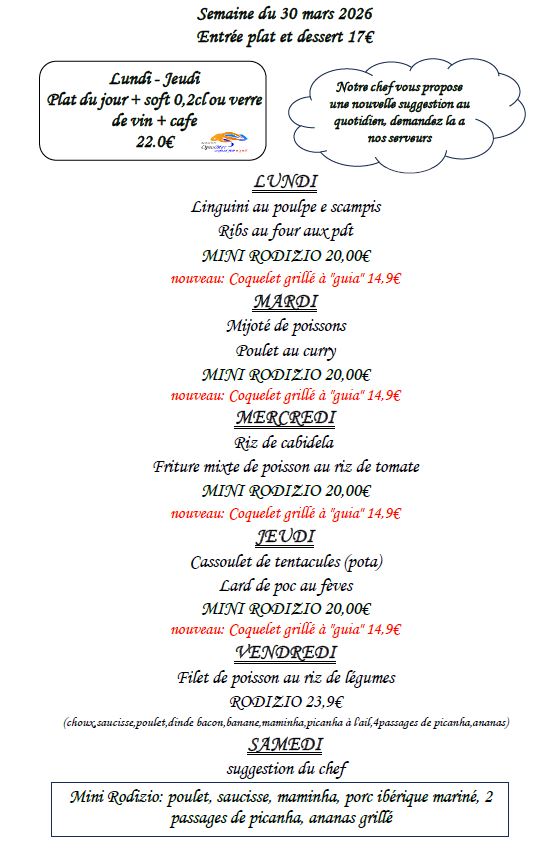 Notre restaurant est spécialisé dans les fruits de mer de qualité ainsi que dans la célÚbre Picanha du Brésil, servie directement à table. La viande est découpée devant vous et servie selon vos préférences : assaisonnement, point de cuisson et découpe, pour une expérience gastronomique personnalisée.